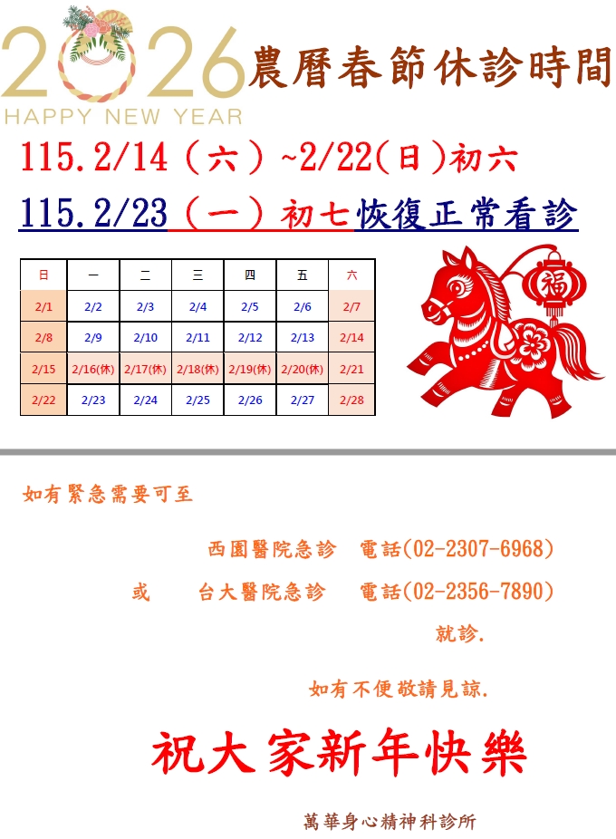 © 2008-2023 WanHua Psychiatric Clinic. All rights reserved.